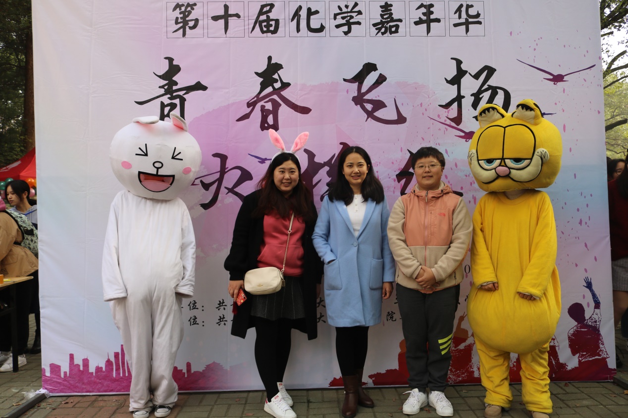 在活动期间,校团委副书记陈娟、化学学院党委副书记徐芬、其他学院的团委书记们、化学学院专业老师们都参与到活动中。“唐老鸭”、“加菲猫”、兔子等同学扮演的卡通人物的出现活跃了场内气氛,各位老师及同学们纷纷与其合影留念。