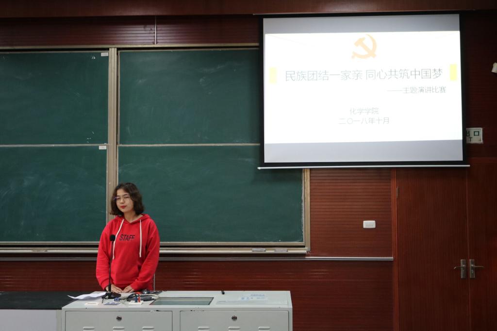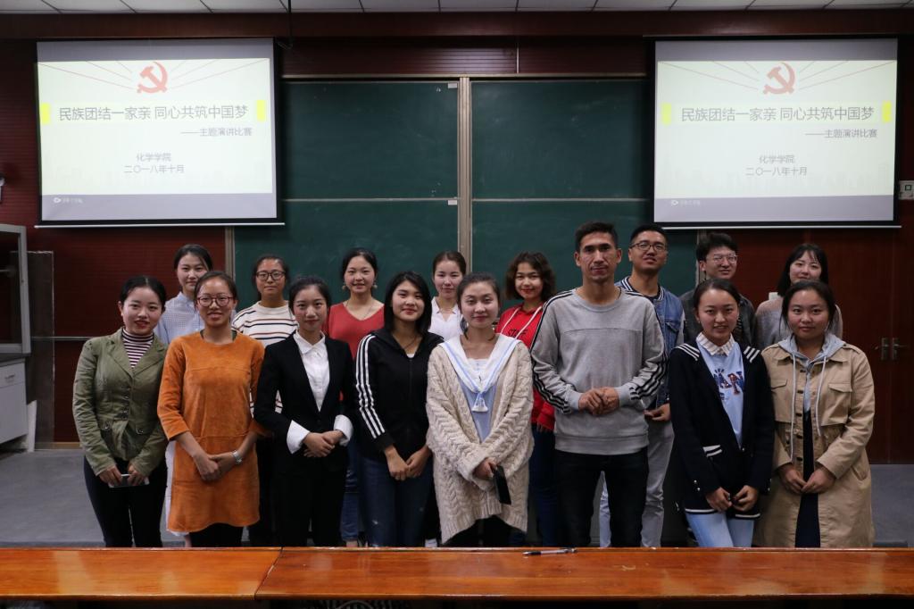新闻中心消息 通讯员 张柯昱 张倩10月29日下午,“民族一家亲”演讲比赛于化学楼201教室顺利举办。本次活动由共青团华中师范大学化学学院委员会主办,化学学院学生会学工部承办,旨在宣扬各族人民团结交融、和平共处的民族环境,促进民族发展大繁荣,并评选出优秀的同学参加学校及省里的比赛。本次演讲比赛的评委有少数民族辅导员肉孜,兼职辅导员李鑫、刘晓梅以及院主持队的邓佳、陈宇曦、李嘉琦,另外2015级学生孙煜林、刘诗雨和2016级学生徐浬也参加了本次活动。