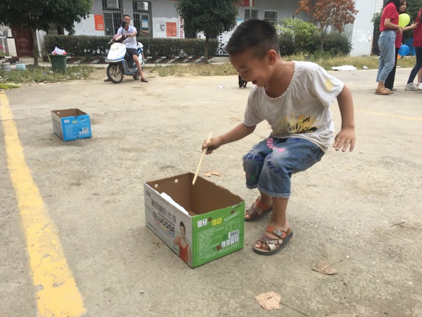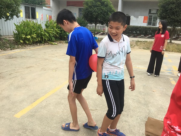 在教学方面,一改当初的室内教学活动,为了增强同学们的身体素质,让同学们养成锻炼身体的习惯,党员先锋实践队队员们于8月27日下午开展了一次趣味运动会。出于对户外活动的渴望,同学们表现得十分积极。由于天气原因,预计上午开展的趣味运动会推迟至下午开展,同学们早早便来到了教室,期待着运动会的到来,运动会的第一个环节为夹气球跑,此环节要求5人一组同时游戏,选手用身体夹着气球,然后沿规定路线行进,到达20米终点后统计成绩。此环节主要考验同学们的相互配合能力,游戏两位同学需要互相配合对方的步伐速度方可成功,而在游戏过程中,同学们也越来越掌握游戏的技巧,并且也体会出了合作的力量。