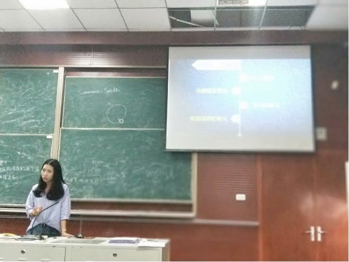 首先进行分享的是黎丹婷,她首先向同学们介绍了自己的个人情况,接着分析了当下的就业情况:从2007年开始,就目前免费师范生政策已实行了11个年头,多地师范生数量已达饱和,故各校师范生的就业情况并不如当初家长和学生所预想的那般乐观。因此如何在求职大潮中逆流而上,在竞争中脱颖而出是在校大学生必须及早思考并为之准备的一大难题。之后她又从自身经历出发,向同学们强调了学习及参加活动的意义。