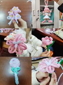 创作过程中,伴随着抒情的音乐,大家探索着扭扭棒的无限可能。同学们运用丰富的想象力,用心塑造着一个个精美的造型,整个场景洋溢着活力和创造力的气息。各种形状、颜色的巧妙结合,传递着同学们对于美好和艺术的憧憬与追求。在90分钟的活动时间里,大家专心创作、互相帮助,最终都完成了自己满意的作品。