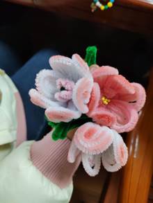 活动最后,同学们拿上自己心仪的作品合影留念。至此,“扭出花朵,花漾时光”手工活动顺利结束。