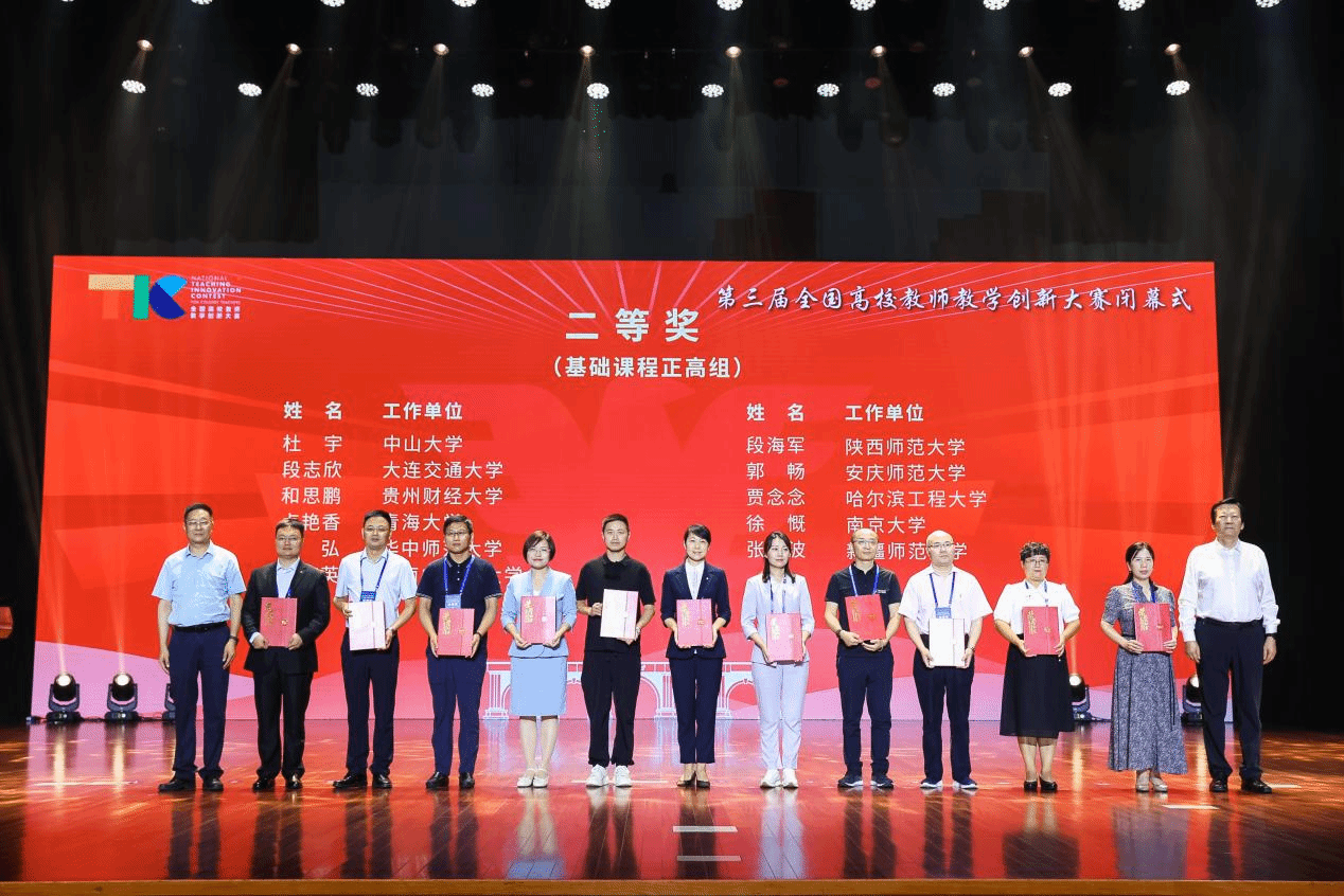 据悉,本届大赛由教育部高等教育司指导、中国高等教育学会主办,浙江大学等六所高校承办,于2022年10月26日正式启动。比赛环节包括网络评审和现场决赛,全国32个赛区共有1194所高校83224名教师参加校赛,23088名教师参加省赛。参加本次全国赛的包括465门课程的1701位教师(含随行团队教师成员),共评出一等奖72个教师(团队),二等奖166个教师(团队),三等奖227个教师(团队),在引导广大教师潜心教书育人、提升高校教师教学水平和育人能力的同时,深化加强高校的人才培养能力,是“十四五”期间《教育部直属单位三评一竞赛保留项目清单》中唯一一项本科高校教师教学竞赛活动。