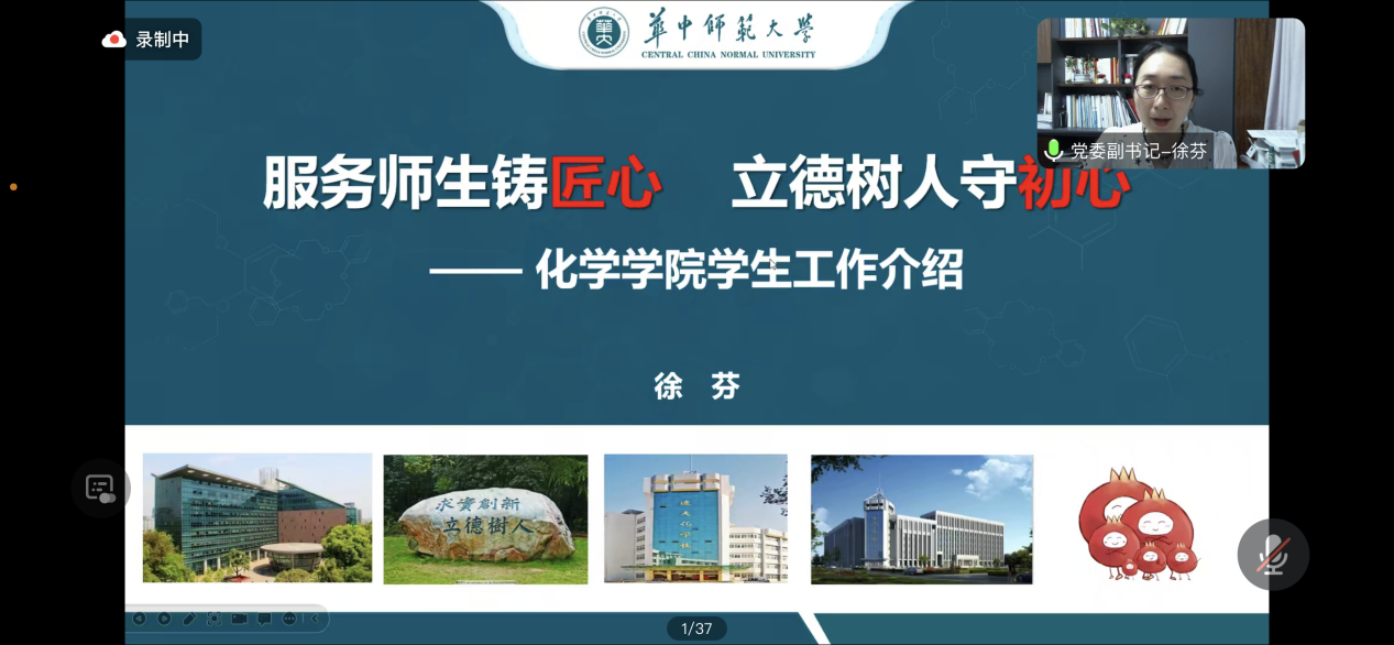 新闻中心消息 记者 刘婕菲 段康特8月24日晚,化学学院2023级新生启航启动仪式以线上腾讯会议的方式顺利举行。此次活动由共青团华中师范大学化学学院委员会主办,化学学院学生会学术科研部承办。此次活动旨在加深2023级本科生对学院及学校的了解,增强大家的专业认知,使大家更快更好地适应大学校园生活。参与本次活动的嘉宾有化学学院党委副书记徐芬、化学学院团委书记马莹、2023级班主任段江、胡杨、王大伟、张国柱、张之涵、2023级辅导员李佳蔚、2023级兼职辅导员张译文,以及2021级、2022级优秀学生代表。本次活动的对象为化学学院 2023 级本科生及家长。启动仪式由2023级辅导员李佳蔚主持。