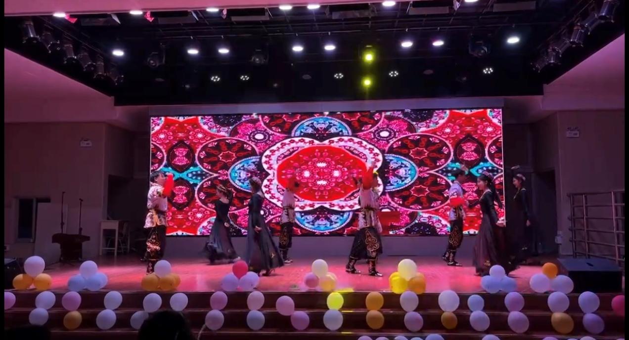 第二轮抽奖活动和最后一次晚点名环节后,晚会进入到最后一个部分——梦想•启航。依丽米努尔等毕业生表演了舞蹈《天山儿女在桂子山》。该舞蹈响应化学学院民族工作核心意识,鼓励各民族学生像石榴籽一样紧紧团结在一起,和睦相处、团结互助。她们结合民族特色,展现少数民族毕业生在化院成长风采。接着,由化学学院党委书记邱宝国和19级教师队伍、家长代表录制的视频惊喜播放,晚会被推向高潮,引发现场观众强烈反响。老师和家长们祝贺19级毕业生毕业快乐,同时寄语毕业生坚守初心,心怀赤忱,脚踏实地,前途似海,踏上新起点、新征程,扬帆远航,实现梦想。