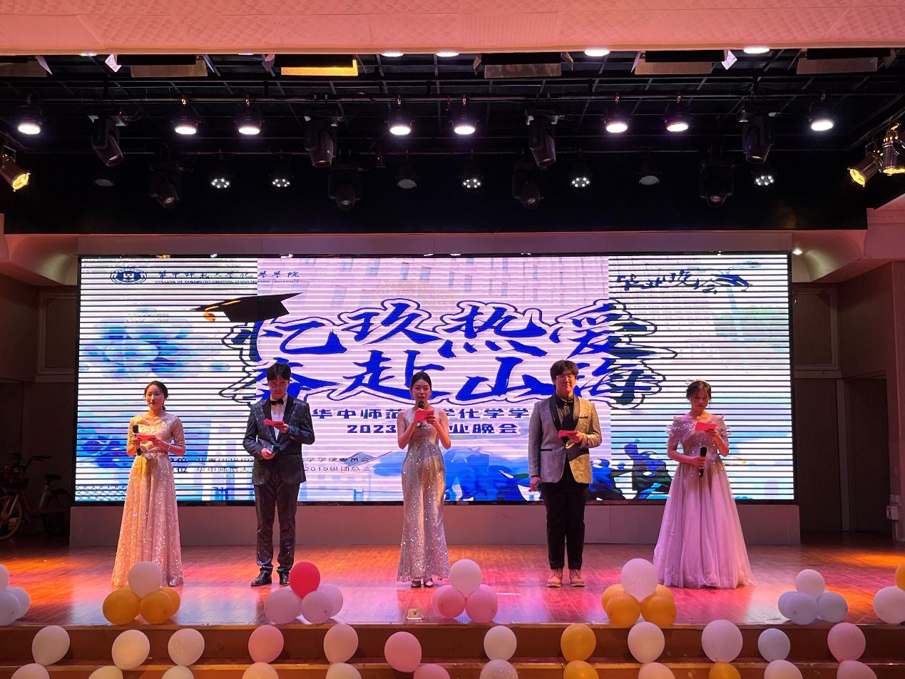 通讯员 蔡文婧 6月11日晚,化学学院2023届毕业晚会在大学生活动中心5楼演播厅顺利进行,晚会由共青团华中师范大学化学学院委员会主办、化学学院2019级团总支承办,旨在让毕业生回忆多彩的大学生活,同时踏上征程,展望未来,为2023级新生送上美好的祝福。参与活动有化学学院党委副书记徐芬,团委书记马莹,2019级辅导员武双欣,2021级辅导员安晓蕾,研究生辅导员张栩晨,1901班班主任李伟国,1908班班主任程莹,1912班班主任曾艳,兼职辅导员姚绮妮、史计策、李美娟以及化学学院2023届本科生、研究生代表。晚会由刘晓、袁林夕、马培妍、马荣、王静茹主持。此次晚会共分为“印记•翅膀”“星辰•大海”“梦想•启航”三个篇章。