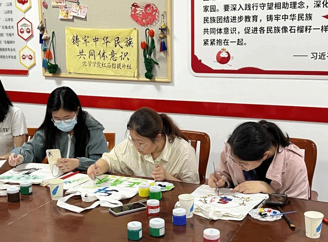 通讯员 宝騄駬 5月5日晚,化学学院“新青年,执画笔,扬五四,续华章”帆布袋绘画活动在逸夫化学楼303B会议室顺利举行。本次活动由化学学院红石榴民族工作坊主办、化学学院红石榴提升组承办,旨在通过以在帆布袋上画出与青年相关内容的方式让同学们感悟“五四精神”,锻炼同学们的实践能力。以手中之画笔,画出青年信仰,绘出青年理想,营造团结有爱、奋发向上的氛围。化学学院红石榴提升组指导教师、兼职辅导员张沛铭,兼职辅导员李美娟出席本次活动,活动由红石榴提升组成员姚心怡主持,共18名本科生报名参与。