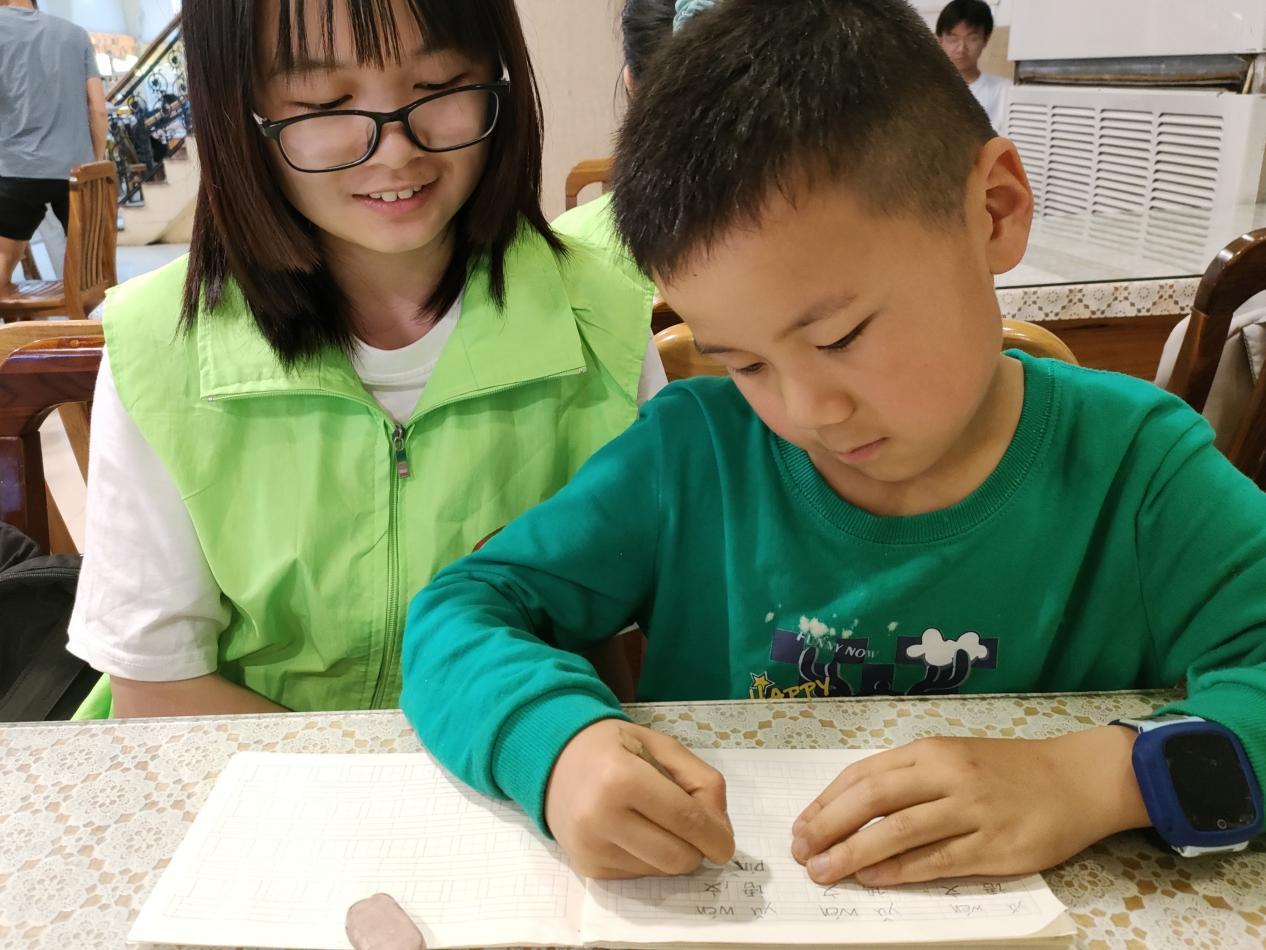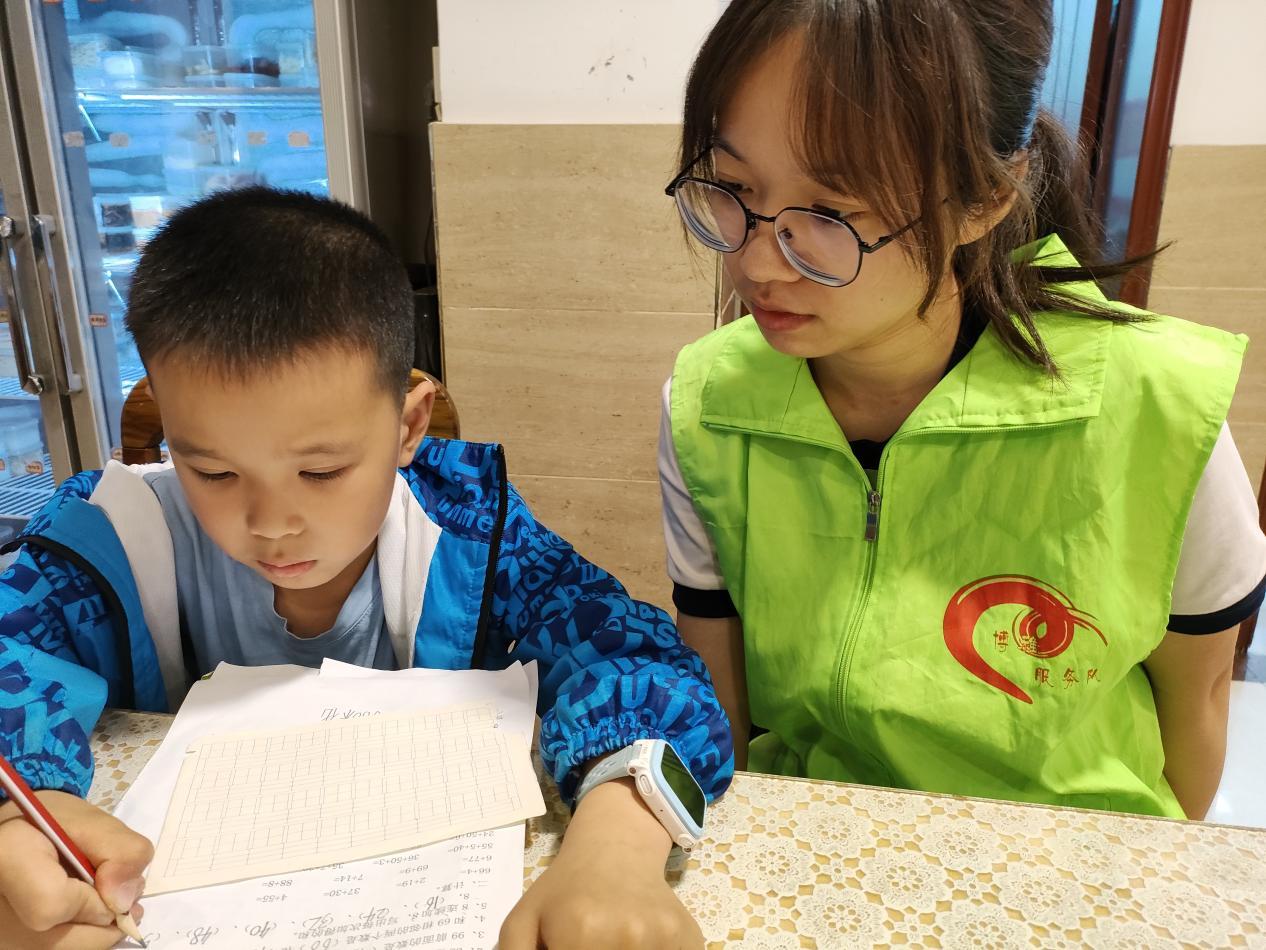 与此同时,志愿者甘玮辅导楷楷(化名)完成数学作业和语文作业。在楷楷完成语文试卷的过程中,甘玮发现楷楷存在较严重的畏难情绪且注意力不集中。对此,甘玮采用鼓励式教学,使楷楷通过学习获得快乐。最终,在甘玮的帮助下,楷楷顺利完成所有任务。志愿者韦鉴倩辅导涵涵(化名)完成语文作业。在韦鉴倩的帮助下,涵涵纠正了作业中的错误并理解了陌生成语的含义。