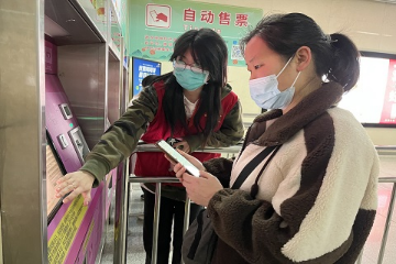 志愿者张锦鸿负责在闸机口引导乘客进站。当观察到乘客携带大件行李进站时,张锦鸿会引导他们至宽闸机口并帮助乘客搬运行李,以提高乘客的进站效率。与此同时,志愿者左小艳在进站口帮助乘客申请乘车码,并向乘客介绍它的使用方法与便利之处,协助乘客体验高效的进站方式。