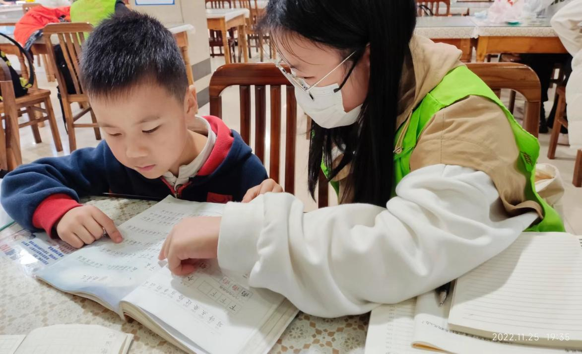 新闻中心消息 通讯员 胡静雯11月25日晚,化学学院博雅服务队副队长巩怡蓉及四名志愿者在学子餐厅举行食堂辅导活动。秉承着“有心之士,原自本心”的服务精神,此次活动旨在帮助照看食堂员工子女,并辅导他们完成周末作业。