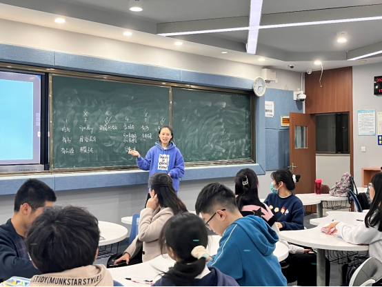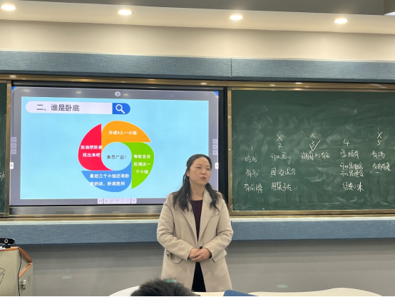 在一片感慨和嬉笑声中,姚绮妮又带领大家开展了另一个有趣的游戏——“谁是卧底”。同学们按照5-6人为一组的原则分组,接着,她在每组的白纸上写下每一组的词汇。拿到词汇后,每个小组进行了激烈的小组内部讨论,紧接着,同学们发挥集体智慧,从各种角度准确描述了关键词。游戏激烈地进行着,同学们丰富多彩的词语展现出他们独特的创造力,有的聚焦其外在影响度,有的聚焦其内在特点。同学们在投票环节纷纷就个人观点展开激烈讨论,整个游戏过程气氛十分活跃。