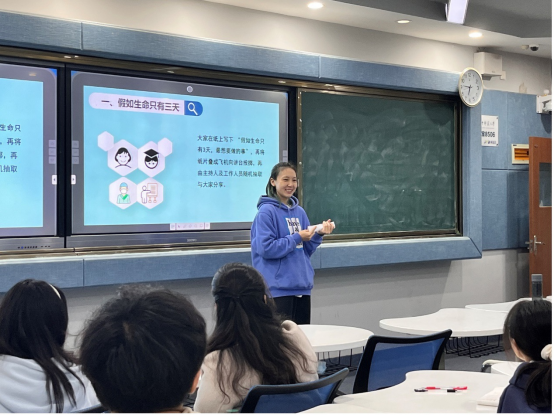 活动伊始,大家在姚绮妮的引导下开始进行第一个团辅活动“假如生命只有三天”。姚绮妮首先介绍了游戏规则,她给同学们分发了白纸,让同学们在至上写下“假如生命只剩下三天最想做的事情”,完成后将白纸折成纸飞机扔向讲台。她随机抽取了一些同学的纸飞机,与现场的所有同学老师一起分享。同学们的心愿和想法中,饱含了自己对家人朋友的感情和各种对兴趣的追求,十分有趣并具有创造力。在几轮的分享之后,同学们增强了彼此之间的认识,教室里欢声笑语不断。