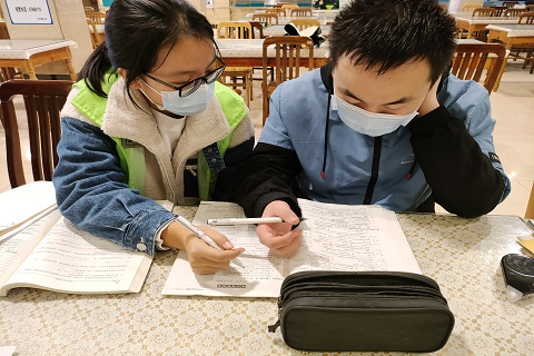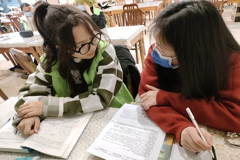 志愿者曾媛媛带领小龙(化名)进行英语期中试卷分析,并向他讲解错题。在对小龙的英语期中试卷分析时,曾媛媛发现小龙无法正确辨别部分近义词,于是曾媛媛以试卷上的错题为例为小龙进行了讲解,并且由错题进行了拓展。通过曾媛媛的讲解,小龙最终掌握了这一知识点。