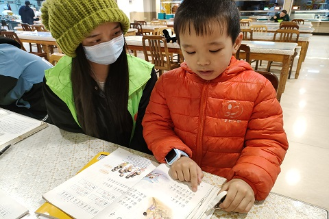志愿者马玉娇在辅导乐乐(化名)时发现她的注意力不够集中,经常在辅导过程中开小差。因此马玉娇选择带领小朋友学习并背诵整体认读音节,此外,她还带领乐乐朗读《日月明》《悯农》等文章。在马玉娇的鼓励下,乐乐超额完成了学习目标。