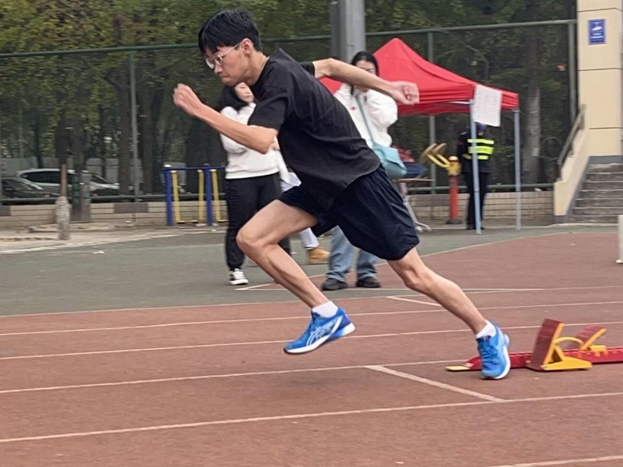 伴着凉爽的秋风,男子400米比赛如期进行。比赛开始前,选手们积极在比赛场地进行拉伸、慢跑等热身活动,同时调整自身状态以饱满的精神迎接即将到来的比赛。比赛正式开始,伴随着清脆的枪响,彭天博起跑迅速,似箭离弦般冲出起点,步伐匀称,步频紧凑,蹬动有力。临近终点,他咬紧牙关,提高步频,不遗余力地冲线,取得了小组第一的佳绩,现场欢呼声此起彼伏。紧接着,运动员王政浩、施骏航、陈昊依次上场,矫健的身影,稳健的步伐都是他们在赛场上挥洒青春的证明。尽管在比赛后半部分稍有出现体力下降,肌肉酸痛等问题,但是他们凭借着坚毅不拔的精神坚持到比赛的最后一刻。冲线的那一刻,他们成功突破了自己,同样取得了优秀的成绩。