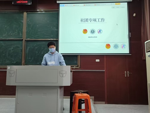 紧接着,团委书记马莹向各社团负责人传达社团专项工作以及近期要注意的工作变化。首先,马莹向大家转达了本学期社团招新方式变化,并讲述了线上招新的具体操作。接着,又对社团会费变化和社团经费使用做了介绍。最后,马莹对社团统一换届工作进行介绍,并说明了社团负责人小组的岗位设置要求。