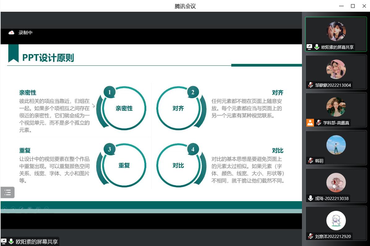 分享会伊始,主持人郝佳郅介绍了提升PPT的制作水平在教学活动中的重要性,这让在场参会人员了解到在现代数字媒体逐步繁荣的今天,掌握PPT制作技巧的必要性。在详细介绍了主讲人欧阳素之后,主持人宣布本次分享会正式开始。