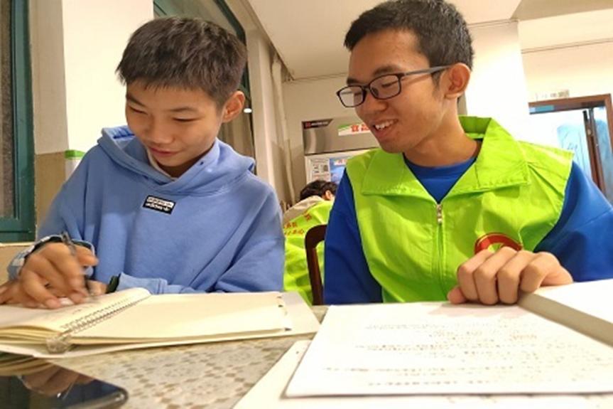 志愿者黄东奕则负责辅导的小聪(化名),小聪在长难单词的记忆上遇到了困难,而且他发现自己在学习时很难集中注意力。黄东奕便向小聪示范了音标记忆法,并带领小聪使用音标记忆法记忆长难单词。为了让小聪能够熟练掌握音标记忆法,黄东奕为小聪总结了音标记忆法的要点和注意事项,并告诉他只有掌握了合适的方法,才能提高学习效率。