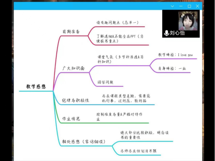 最先进行分享的是刘心怡,她从前期教学准备工作、课堂纪律管理和家访细谈几方面分享她的支教感想,细致地讲述了她在黄冈市蕲春县白水中学支教期间教学工作及乡村调研的经历。她解答同学们关于支教工作的疑惑,并就教学方式的改进优化进行经验分享,从多维度增进大家对支教活动的了解。