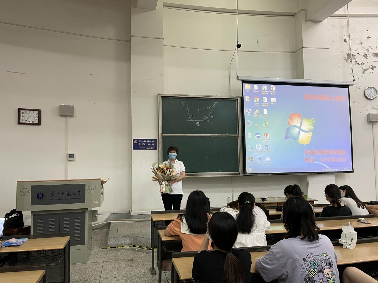 活动结束后,毕业生党员代表肖仁可为于翔老师送上了鲜花。至此,“老党员讲化学故事”毕业主题教育活动圆满结束。2018本科生邓彦辉表示:“于翔老师很有感情地讲述了她与化学学院的故事,也引发了我的共鸣,我也希望自己在未来工作中能做到于翔老师提出的三点希望,另外,感谢学院老师与辅导员四年的关爱与栽培。”