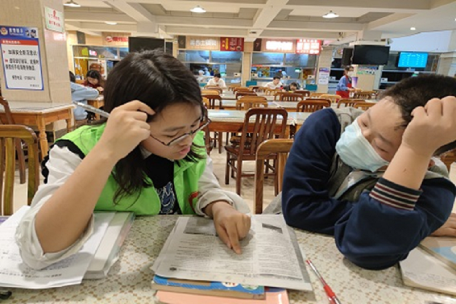 新闻中心消息 通讯员 江嘉颖 4月29日晚,化学学院博雅服务队食堂辅导志愿活动于学子餐厅开展,该活动由巩怡蓉带队,马依、杜千千和柳国蓉三名志愿者参与。此次辅导活动旨在帮助食堂职工照看其子女,辅导小朋友完成周末作业。