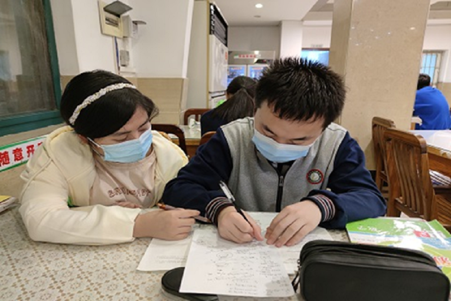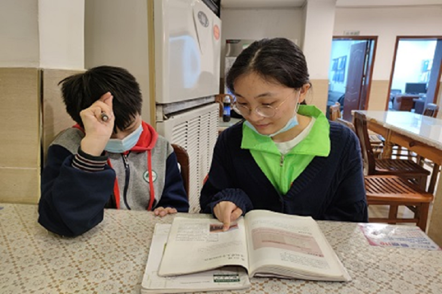 与此同时,志愿者柳国蓉辅导小阳(化名)完成英语翻译和阅读。起初,小阳对英语的学习缺乏主动性,但经过柳国蓉的开导后,小阳逐渐进入学习状态。接下来,她向小阳介绍了联系上下文判断语意的英语翻译技巧和抓关键词的阅读方法,并且将理论运用于实践,帮助小阳理解。经过几次练习以后,小阳熟练掌握了做题的方法,在英语练习的正确率上也有了明显的提高。
