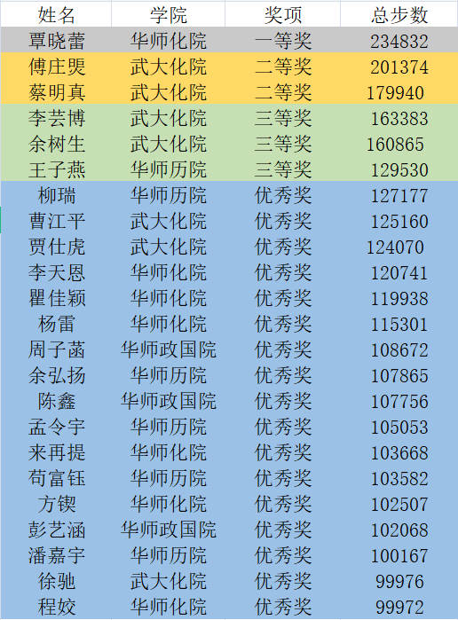活动结束后,经各学院活动负责人进行数据统计,共有23名同学分获一、二、三等奖及优秀奖。以下是获奖名单: