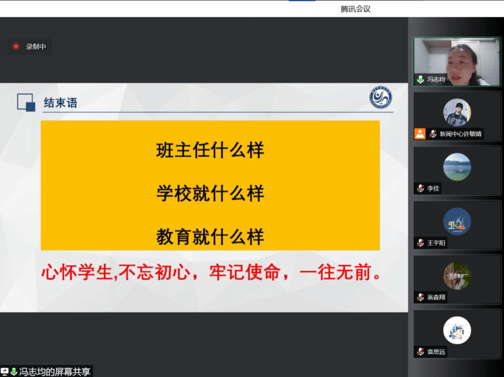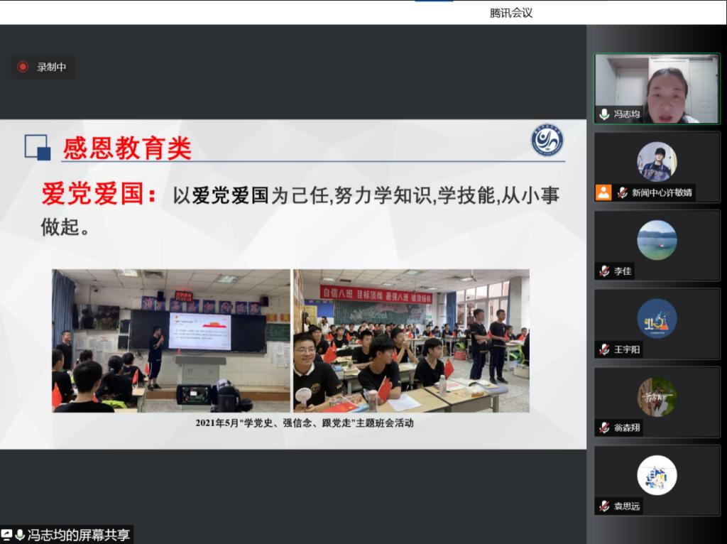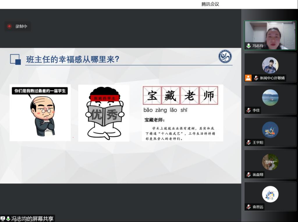 新闻中心消息 记者 许敏婧 3月18日晚,“助力名师成长主题报告之六-别人家的班主任—班级管理之活动育人”以线上会议的形式顺利举行。本次会议由李佳老师主持,主讲人为重庆市合川中学教师冯志均。冯志均老师曾获重庆市合川区教坛新秀、区级骨干教师、先进班主任、重庆市“一师一优课,一课一名师”高中组二等奖、高中化学优质课大赛二等奖等荣誉称号和奖项。