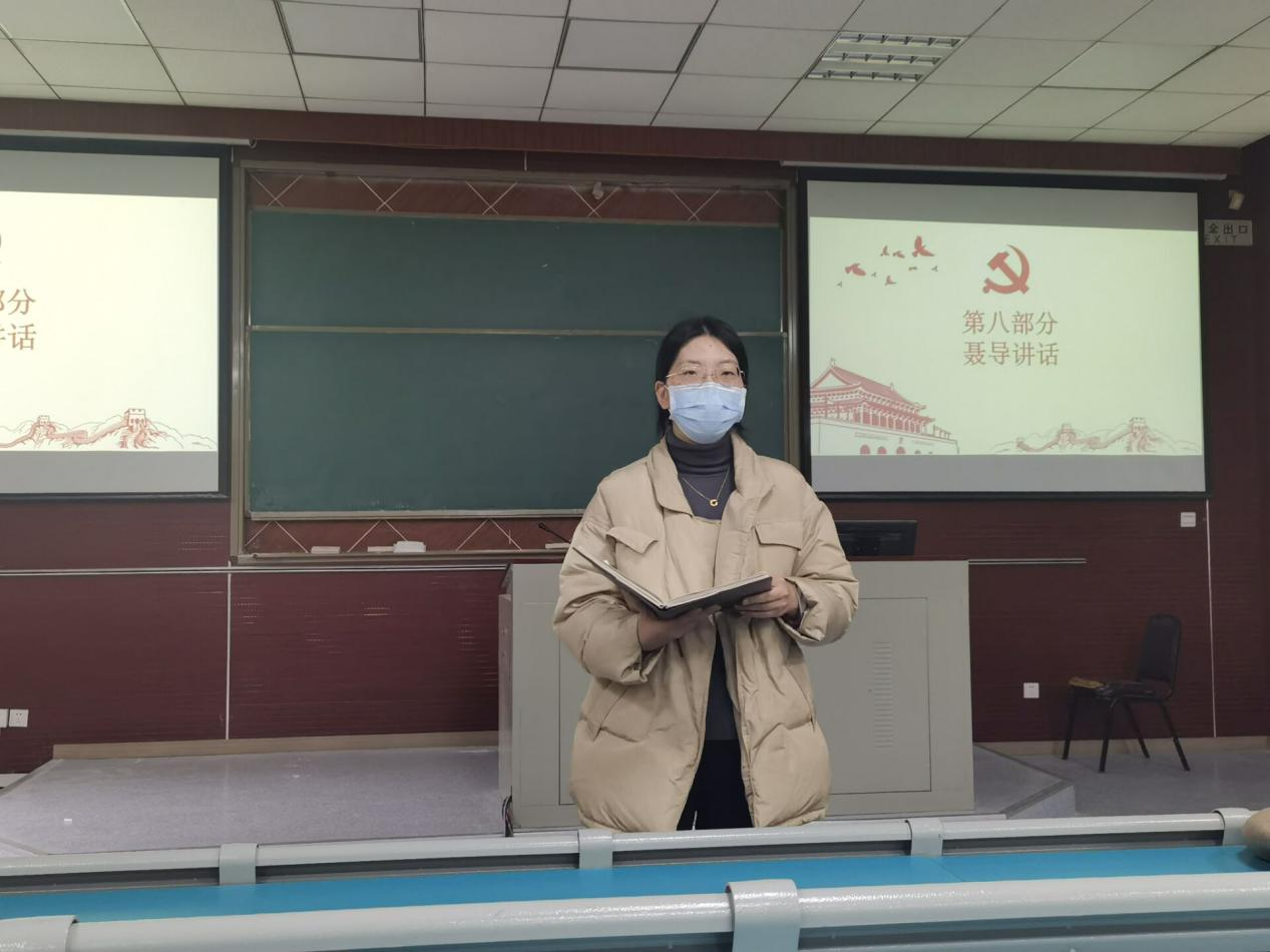 紧接着,由刘银领学贯彻“两会”精神及《政府工作报告》与《政协常委会工作报告》。在学习结束后她提出,“新时代大学生党员要弘扬优良传统,担当职责使命,为全面建设社会主义现代化国家、实现中华民族伟大复兴的中国梦凝聚强大共识、汇聚磅礴伟力。”