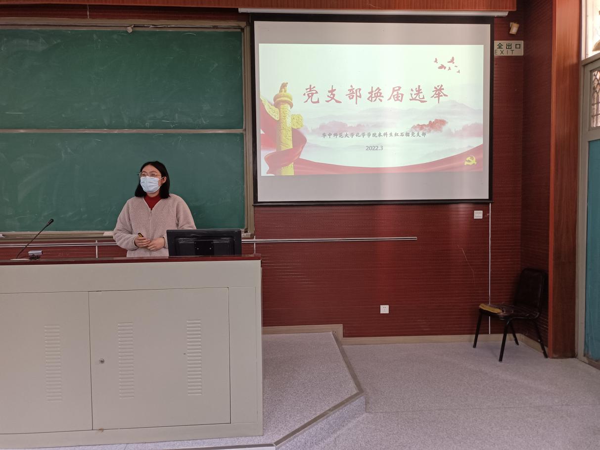 通讯员 凌佳婷 3月5日下午和6日上午,为进一步发挥基层党组织战斗堡垒作用和党员先锋模范作用,化学学院本科生红石榴党支部2022年度组织生活会分别在H201教室和线上举行。本次会议内容包括集中学习十九届六中全会精神和开展党员不信教专题教育、进行支委会换届选举及民主评议。化学学院党委副书记徐芬、本科生红石榴党支部书记武双欣、2018级本科生辅导员马莹及支部全体成员参与本次活动。支部成员张林林同志担任本次活动主持人。