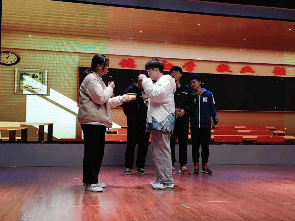本次晚会分为三个部分,分别是“辞旧迎新”“灯火万家”和“青春飞扬”,每个部分结束之后会有一名嘉宾参与主持现场抽奖。小品《恰同学少年》以幽默的方式讲述了老师们对同学潜移默化的教育与影响,让同学们在阵阵欢笑之中重温高中生活。沈桓独唱《逆光》,她坚定有力的歌声和大屏幕上精心制作的视频都让大家深深感受到了奋斗的力量与意义。