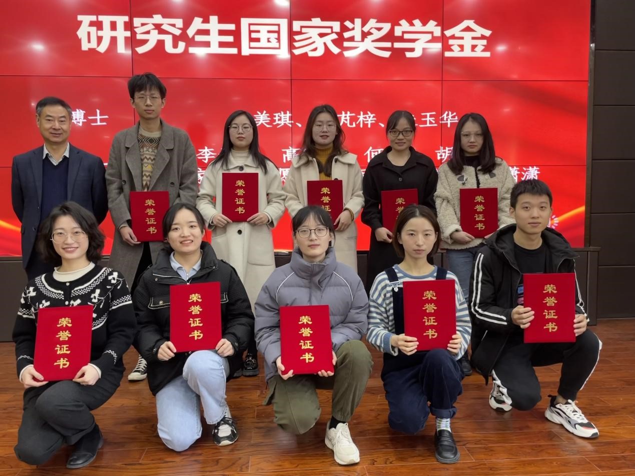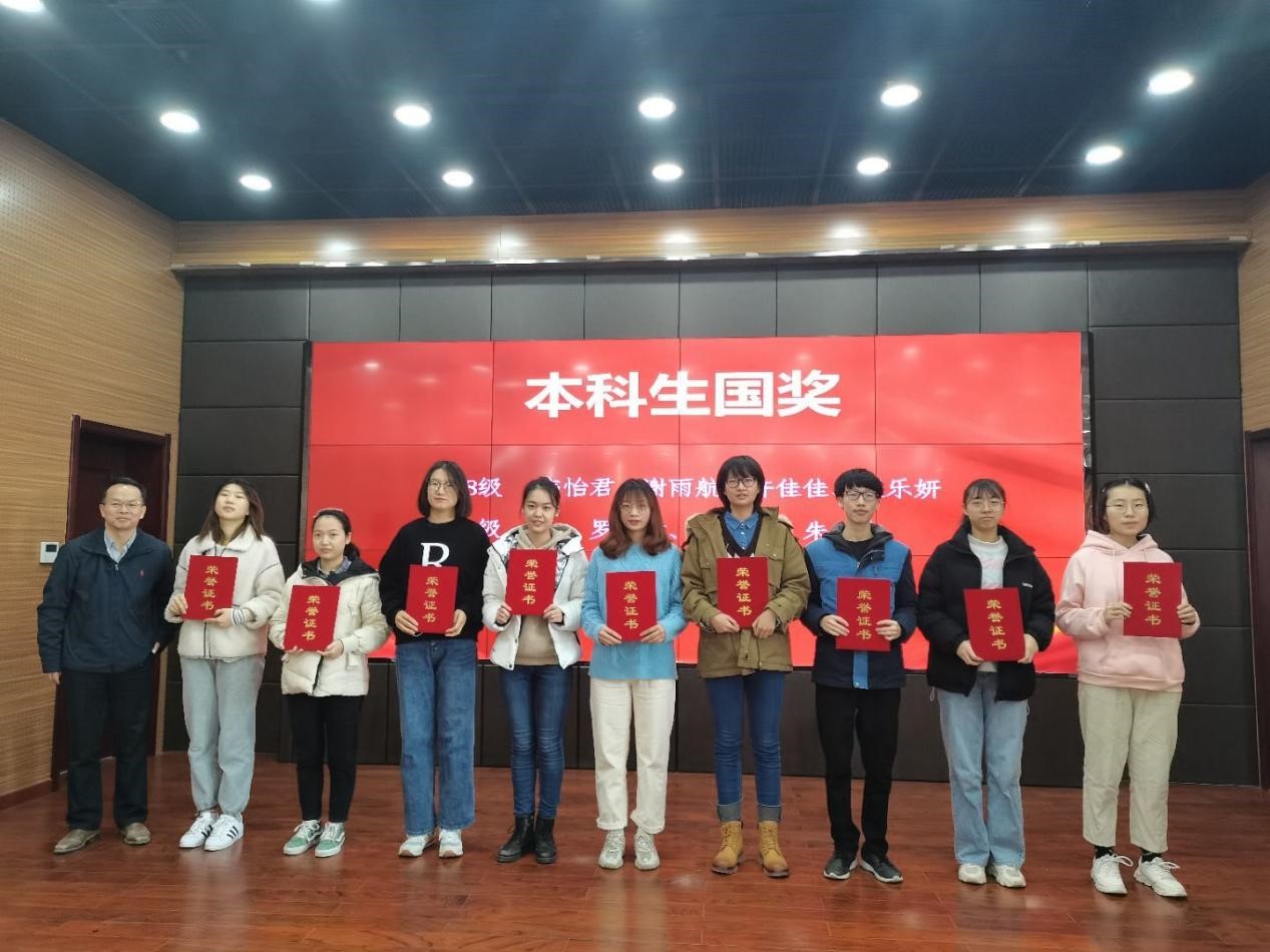 在孙贻春博士讲座结束后,孙煜林带领大家简要回顾了本次化学周的系列活动。紧接着,颁奖典礼正式开始。由邱宝国为本科生“国家奖学金”获奖者颁奖,由徐芬为本科生“国家励志奖学金”获奖者颁奖,由郭彦炳为“79级校友奖学金”获奖者颁奖。
