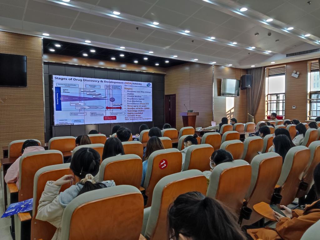 闭幕式伊始,孙煜林简要介绍了到场嘉宾。紧接着,由武汉启瑞科技发展有限公司质量副总裁孙贻春通过线上腾讯会议的方式开展“药物研发领域的职业机会”主题讲座。孙贻春从“何为目前最热门的药物”、“药物的发现和开发的过程”以及“药物研发领域的职业机会”三个方面展开讲解,并向同学们介绍了当下最热门的药物——抗击新冠肺炎药物的发现过程及后续研发并投入使用的相关知识。孙贻春还指出学好有机化学、分析化学和物理化学对于药物研究具有重大意义,因此,他鼓励同学们在今后的学习中努力学好每一门化学知识。