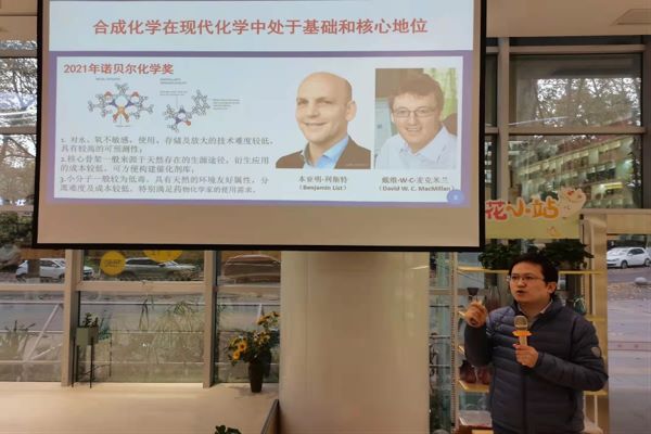 在讲解化学合成的意义时,他列举紫杉醇人工合成对癌症治疗的推动作用证实了化学合成的重大意义,并结合化学合成领域的诺贝尔奖的应用价值指出合成化学是顺应行业需求而生的一个学科门类,目的是满足人们对化学合成的需求。接下来,他结合实例分别介绍了合成化学在现代食品、现代医药、材料科学、生命科学等方面的应用。最后,陆良秋向同学们分享了自己的绿色合成化学追逐之路。