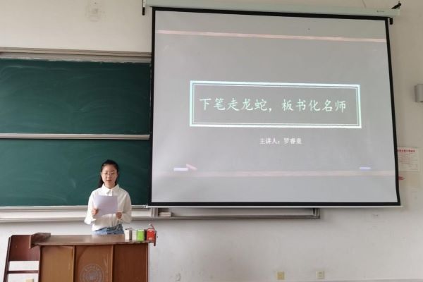 最后,罗睿童与同学们交流经验,就同学们的疑惑给出自己的答案,帮助他们进一步理解板书的相关知识。至此,本次优秀师范生技能分享会圆满结束。活动结束后,2021级黄宝平表示:通过今天的技能分享会,我对板书的理解和认识更加深刻,更加系统了,以后我一定会认真练习板书,努力完善自己!