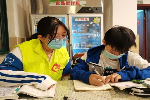 至此,化学学院博雅服务队食堂辅导活动圆满结束。志愿者们在辅导小朋友的同时,自己也得到了很多收获。志愿者肖金莲表示:“有的小朋友上初中后发现课业难度和学习压力增加,这时候我们需要结合自己的经历和经验给予小朋友有用的建议,帮助他们更好地适应初中的学习生活。”