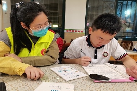 活动伊始,肖雪菲介绍三位队员与小朋友们相互认识,并与家长们进行沟通,提前了解小朋友们近期的学习情况以及本周的学习任务。在充分了解了小朋友们近期的学习情况后,带队人肖雪菲组织志愿者们展开了辅导工作。