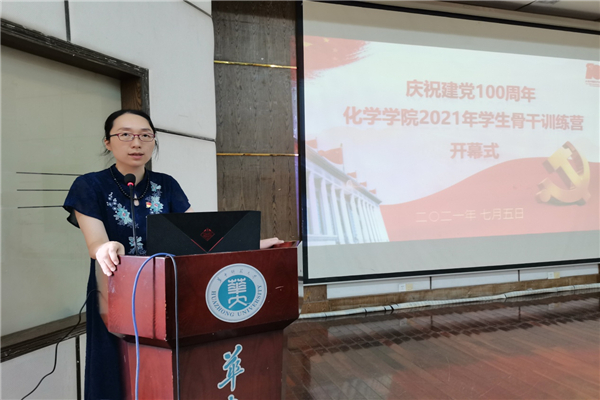 新闻中心消息 记者 冯祝 安鑫7月5日上午,化学学院2021年学生骨干训练营开幕式在九号楼报告厅顺利举行。本次活动旨在深入学习习近平总书记在建党一百周年大会上的讲话,增强党员和入党积极分子对党史理论知识的理解,以全面学习党史的方式来庆祝建党100周年。出席本次活动的嘉宾有化学学院党委书记邱宝国、党委副书记徐芬、红石榴党支部指导老师聂敏、菁英党支部指导老师马莹。化学学院全体本科生党员和入党积极分子共同参与了本次活动。本次会议由徐芬主持。