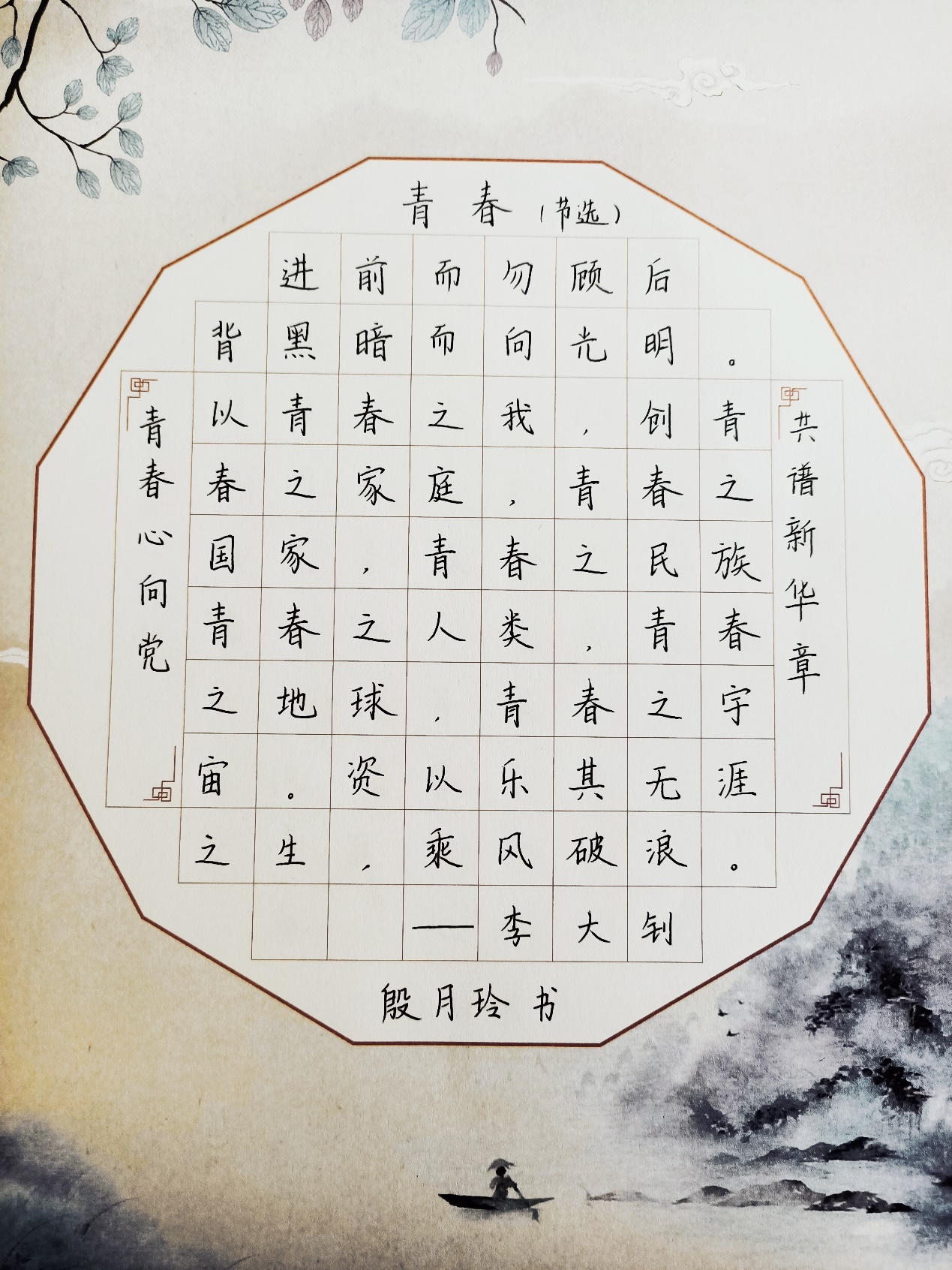 作品简介:2021年是中国共产党成立100周年,这段百年峥嵘岁月不仅是历史的荣光,更是新征程的起航。作为新时代的青年,我们更要肩负时代使命,谱写绚丽华章。这篇作品中摘录了李大钊先生在《青年》中对青年的寄语,谨以此致敬先烈,同时激励当代青年珍惜青春,做优秀青年。