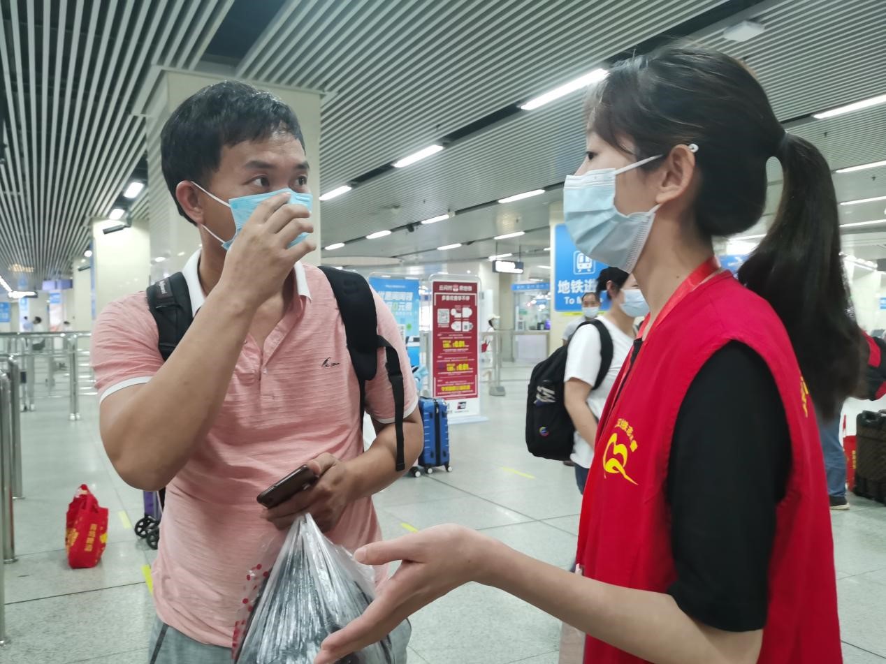 汉口地铁站的乘客大多数来自外地,志愿者与他们的沟通也存在一些困难,但志愿者李晓乐一直耐心细心解决乘客问题。在帮助乘客们购买车票时,自动售票机出现了故障,她立即带着乘客更换另一台自动售票机购票,并在他们离开后及时向工作人员反映情况。活动结束后李晓乐表示:“我在帮助一个阿姨购买车票之后,她向我竖起了大拇指并对我说谢谢。我觉得之前的辛苦都变成了快乐。”