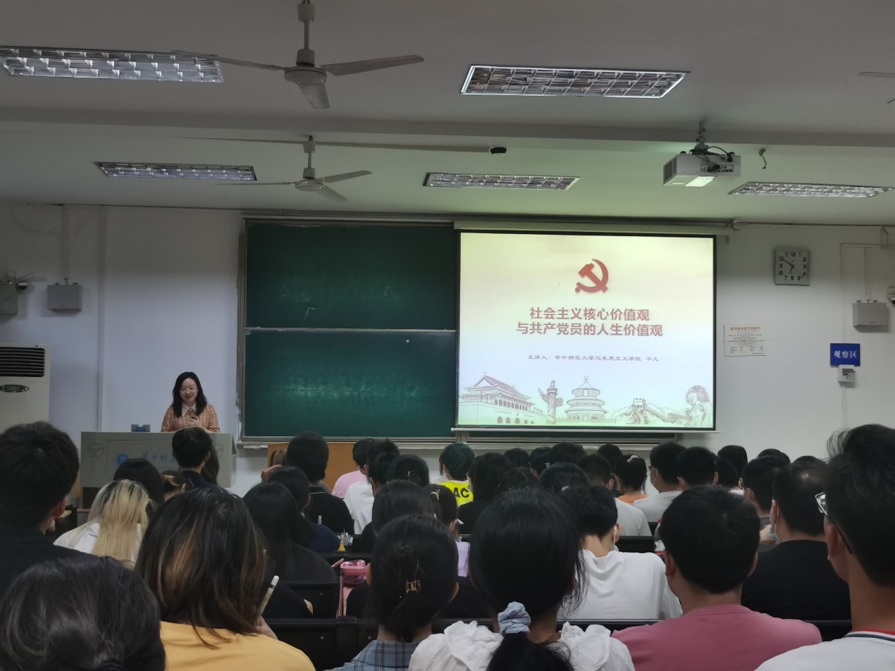 新闻中心消息 通讯员 谢江陵6月5日晚,第65期入党积极分子第五次线下培训于七号楼7203教室顺利开课。本次党课培训邀请到了马克思主义学院的平凡副教授担任主讲人,以“社会主义核心价值观与共产党员的人生价值观”为主题。出席本次活动的嘉宾为第65期入党积极分子培训班班主任万红阳,带队老师孙锡凤。参与培训的人员为化学学院与美术学院本期入党积极分子。此次培训旨在加强入党积极分子对社会主义核心价值观的认识以及树立正确的人生价值观。
