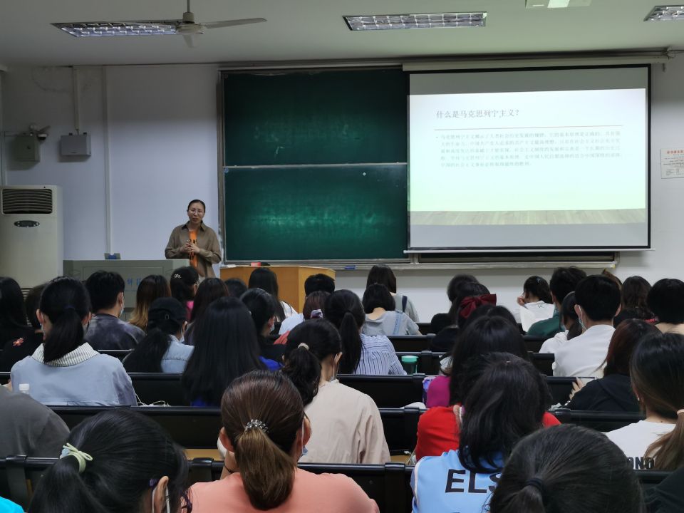 随后,朱晓黎又阐述社会主义的理念和原则,从价值信仰、认知阐释和行动策略三个方面分析中国共产党的意识形态,向同学们介绍中国共产党的领导体制。朱晓黎向同学们说明中国共产党的宗旨是“全心全意为人民服务”,并介绍 “中国模式”的经济发展和社会基础设施建设。