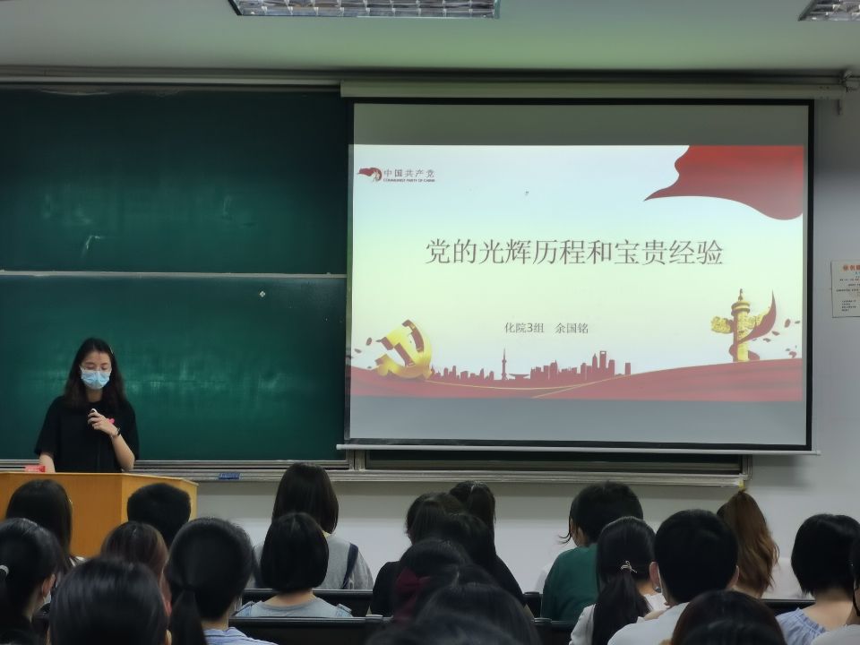 课程开始前,进行小组成员分享,交流对上节课的学习感受。化学学院第3小组余国铭回顾党的光辉历程和宝贵经验,论述党史学习的意义和时代精神的内涵。美术学院第3组董雅昕向大家介绍红旗渠精神,追忆太行山上的一段奋斗历程。美术学院第4组武欢则讲述了我国两弹一星元勋王淦昌的故事,从英雄精神中汲取前进力量。
