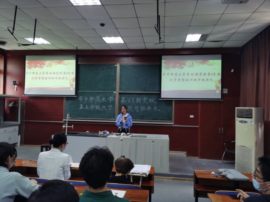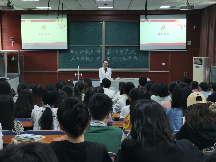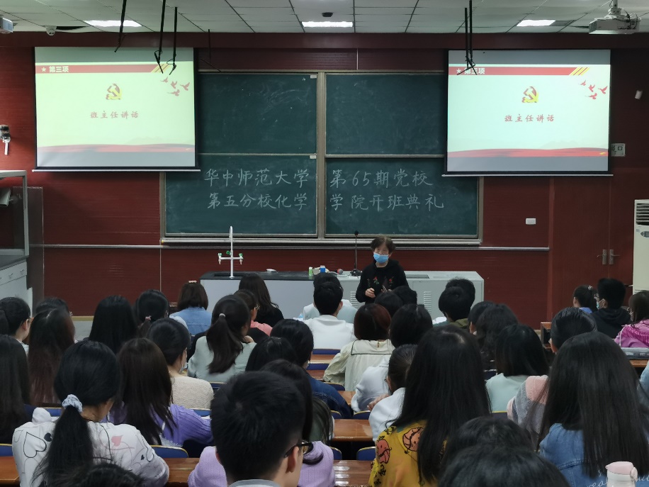 新闻中心消息 通讯员 佘香霖5月20日中午,华中师范大学第65期党校第五分校化学学院开班典礼在化学楼H201教室顺利举行。出席本次开班典礼的嘉宾有化学学院党委副书记徐芬、带队老师孙锡凤,本次活动由班长蔡文婧主持。