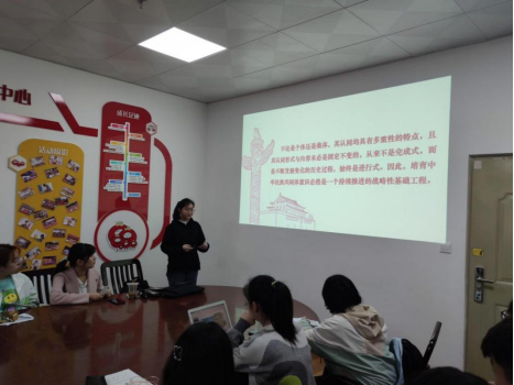 红石榴提升组消息 通讯员 程雪洁 为增强提升组成员民族团结意识,进一步推广普通话,4月9日中午12:30,化学学院红石榴提升组于化学楼303B会议室开展了主题为“铸牢中华民族共同体意识,学好用好国家通用语言文字”的理论宣讲活动。本次活动我们邀请到了化学学院李佳老师、辅导员安晓蕾老师和提升组的指导老师阿迪拉老师莅临指导,同时参与本次活动的还有红石榴提升组全体成员。