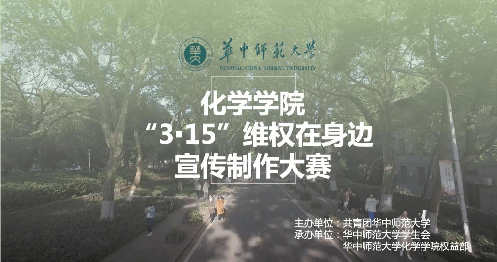 新闻中心消息 通讯员 李睿3月14日,化学学院“3.15维权在身边”宣传制作大赛通过线上会议的方式顺利进行。本次活动由共青团华中师范大学化学学院委员会主办,由化学学院学生会权益部承办。本次活动旨在增强广大学生对国际消费者权益日的认识以及提高广大学生维护自身合法权益的能力,培养同学们的创新能力。本次活动的嘉宾及裁判有化学学院团委书记马莹、化学学院团委学生会主席团成员严仔夷、物理科学与技术学院维权服务与调研中心负责人王俐博、社会学院权益部负责人张一鸣以及化学学院权益部相关负责人。由化学学院权益部负责人徐国睿担任主持人。