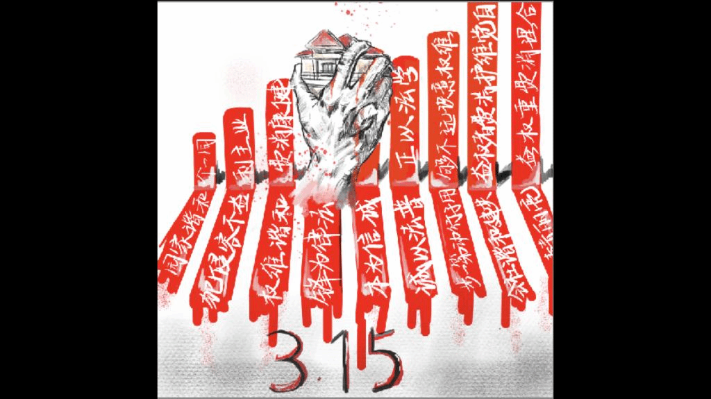 还有部分选手以海报的形式参赛。25号团队“马不婷蹄队”提交的手绘海报,该作品取材于2015年红日山湖户主维权事件,作品以绘画的形式描绘了开发商违法强占民房的事件,团队代表贺梦婷表示:“大家要重视消费者权益。”作品背景鲜红的飘带不仅仅是维权口号,还象征着消费者的血汗。”