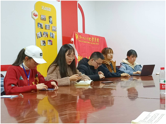 会议伊始,各协会相关人员总结汇报近期举办的活动。首先发言的是侠文化研究社负责人,侠文化于11月27日星期五早上进行了金庸小说小片段的排练,晚上进行了《搜索》的观影,讨论了网络暴力的问题;12月4日星期五晚上举办了侠客山庄自习室启动会,并表示于12月7日正式启动,其中签到、签退、课间活动等活动正常进行,同时进行了活动期间的宣传。绿丝带爱心社于11月28日举办新生见面会活动,邀请社团部部长参与活动,活动期间制作水果拼盘,美味糕点和玩游戏,且拍照上传至群相册。由于此次活动采办较多,绿丝带爱心社近期主要进行报账总结工作,本周进行最后一次报账。另外负责人表示因为疫情的原因,志愿活动无法开展。最后进行汇报的是倚丹青结珠协会,负责人表示倚丹青结珠协会在11月22日编苹果,并上传作品,在11月28日编爱心,在12月5日编花瓶,其负责人表示每一次活动都会提前在群里通知,让社员选出最想要编的作品,完成作品之后上传至群相册。
