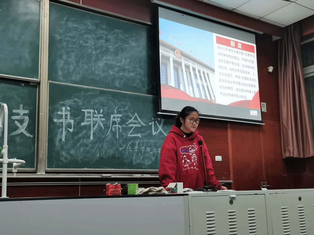 随后,由组织部学员田茹心进行十一月时政分享,学习和解度了习总书记在中国-东盟博览会的演讲致辞,对于共建命运共同体这一主题有了全新的认识和思考。