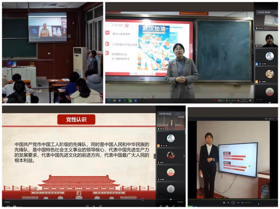 接下来,未能到场的部分师范生通过播放视频或线上展示的方式参与答辩。何雨婷从过去、现在、未来三个方面展开陈述,回顾自己通过参与宣传工作、参加“学做讲”活动为同学们服务的经历,总结近期的实习情况,对未来的发展做出规划。在提问环节,王琛提问她:“平时如何开展批评与自我批评?”她提到,通过定期写思想汇报反思自己的不足、结合最近发生的时事反思自己作为党员应当做些什么,与优秀党员存在哪些差距等。